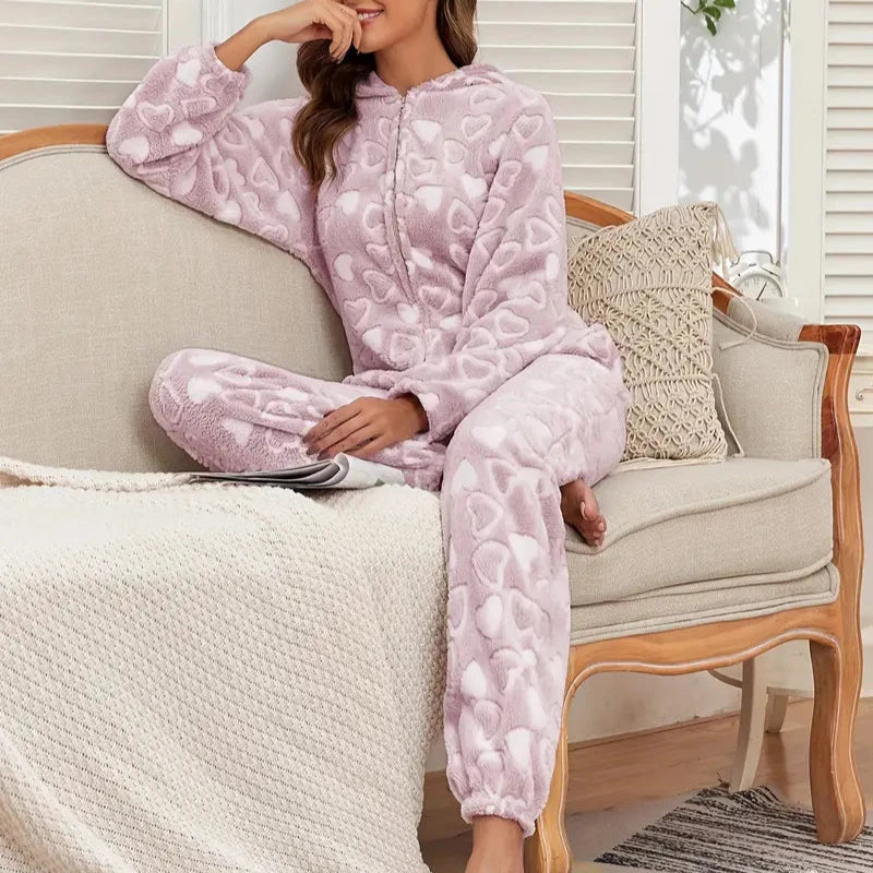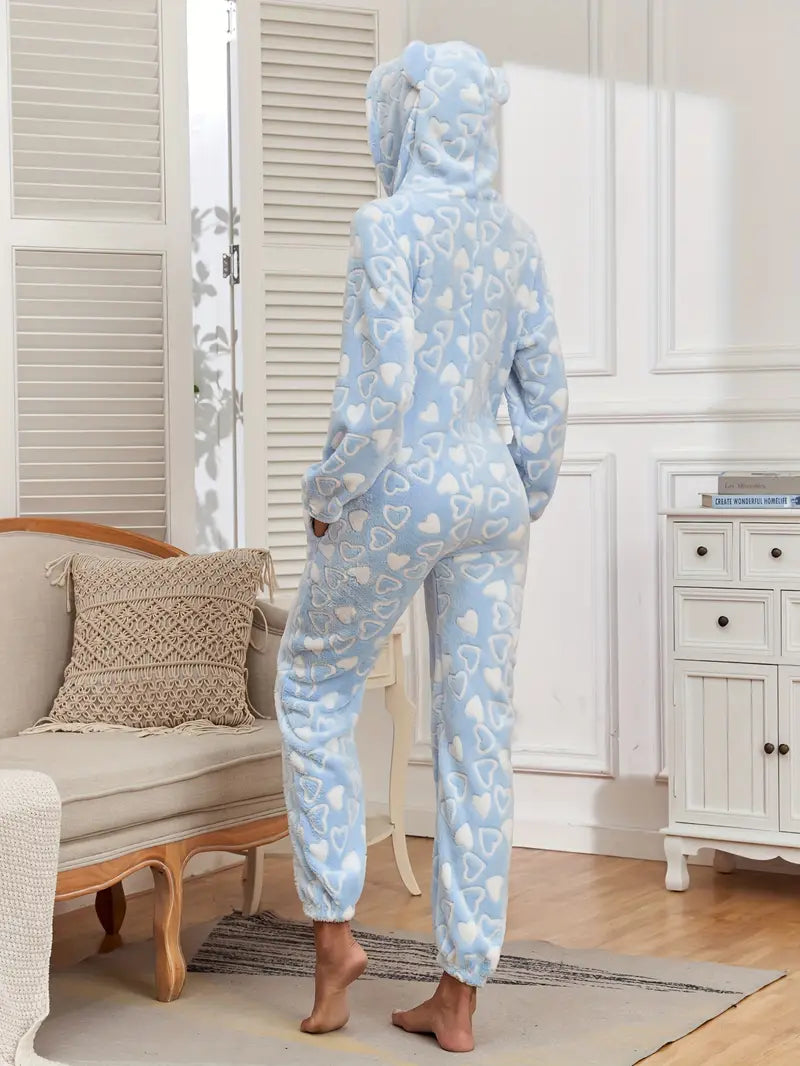 Flaunt your love and conformity while late night hangout or maybe long walk by wearing Heart Pattern Fuzzy Onesie™.